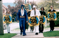 The weather smiled upon The King this day in spite of the predictions of rain. Perhaps this signals an endorsement? Just perhaps. At 11:30 The party set forth in quest of those all important signatures, they travelled along Fourth, then up to Broadway, along to MacDonald, back to Cornwall, and returned via Kits Beach to Vanier Park. The trek was 5 hours, and it was fruitful. At the end of the quest, our heroes had collected 90 valid signatures from citizens of the riding. Along the way, the King listened to the concerns of many of the people. Concerns such as; "Where did you get that suit?" and "Aren't you cold with your chest open like that?" He would respond by singing, "Treat me like a fool, treat me mean and cruel, but elect me."