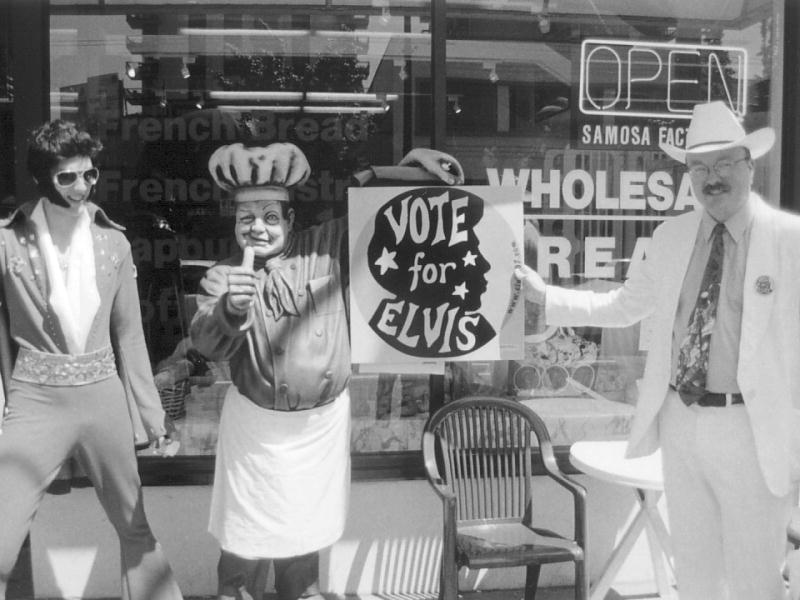 Elvis with his campaign manager, Colonel Sand...umm... Tom Parker.
